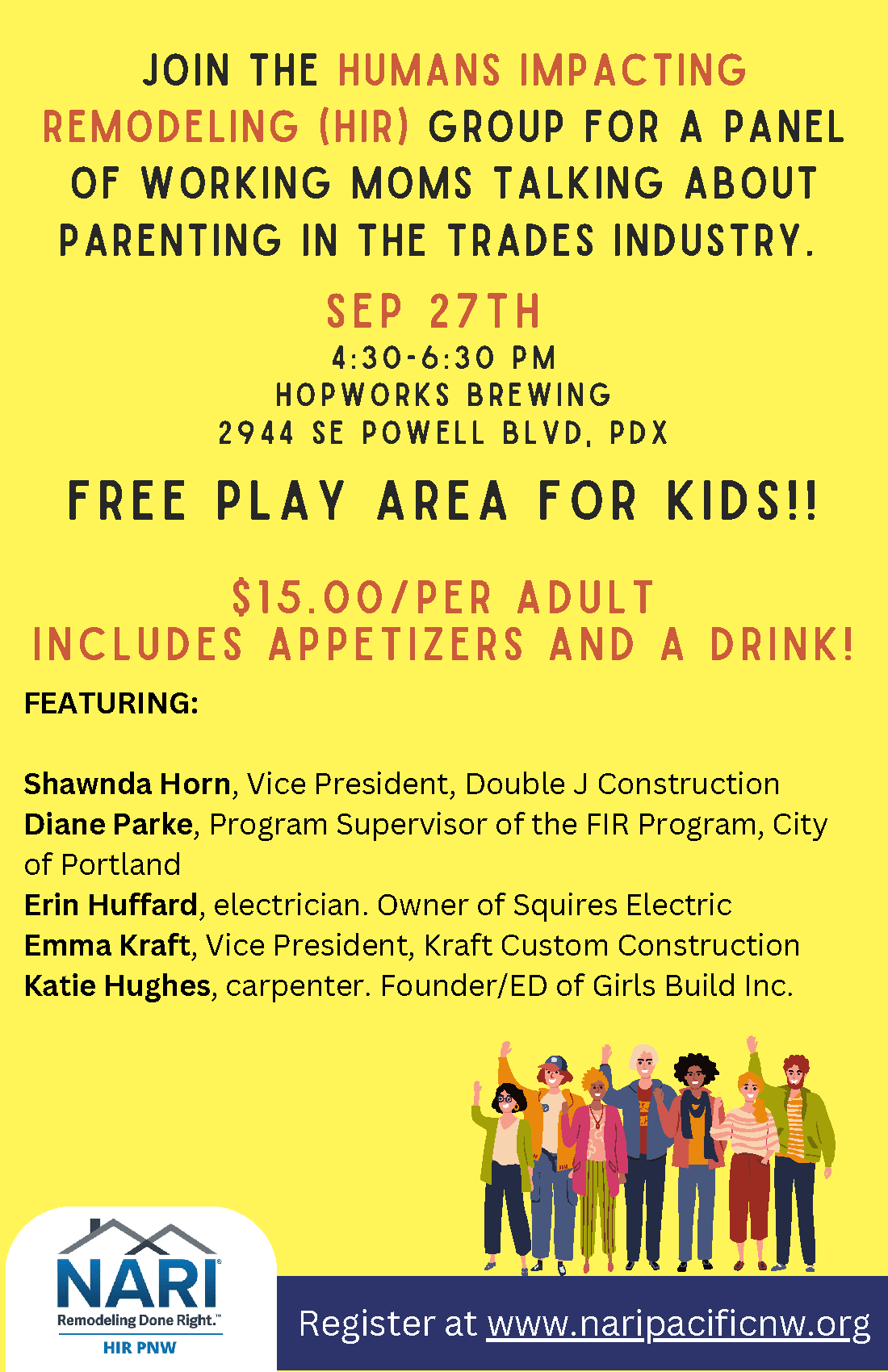 Join the Humans Impacting Remodeling (HIR) group for a panel of working moms talking about parenting in the trades industry. Panel Includes: