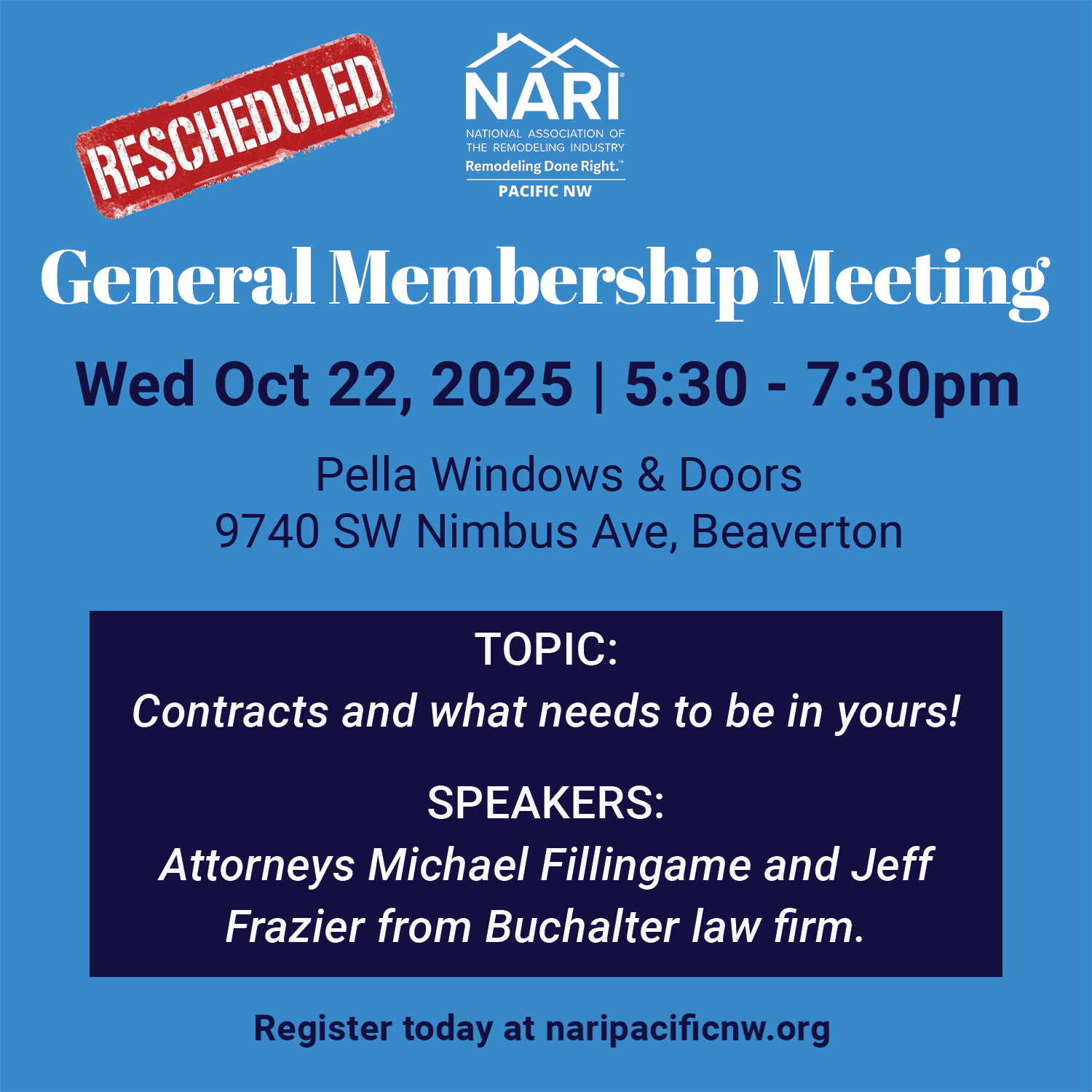 This happy hour will include a presentation by two local attorneys who specialize in construction and contracts. Michael Fillingame and Jeff Frazier from Buchalter will be sharing the important things you MUST have in your contracts and share some ways to keep you and your business successful. There will be a period for questions and answers so bring your legal questions to this one!