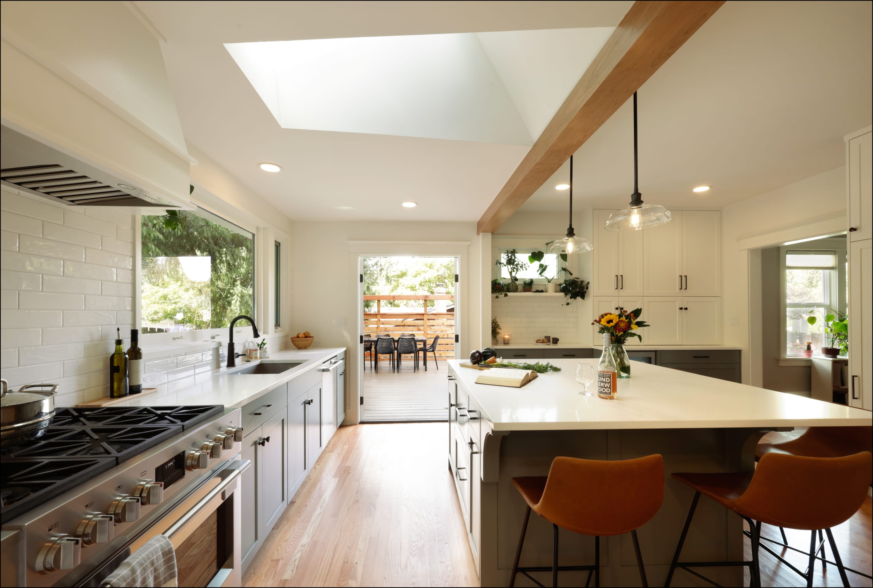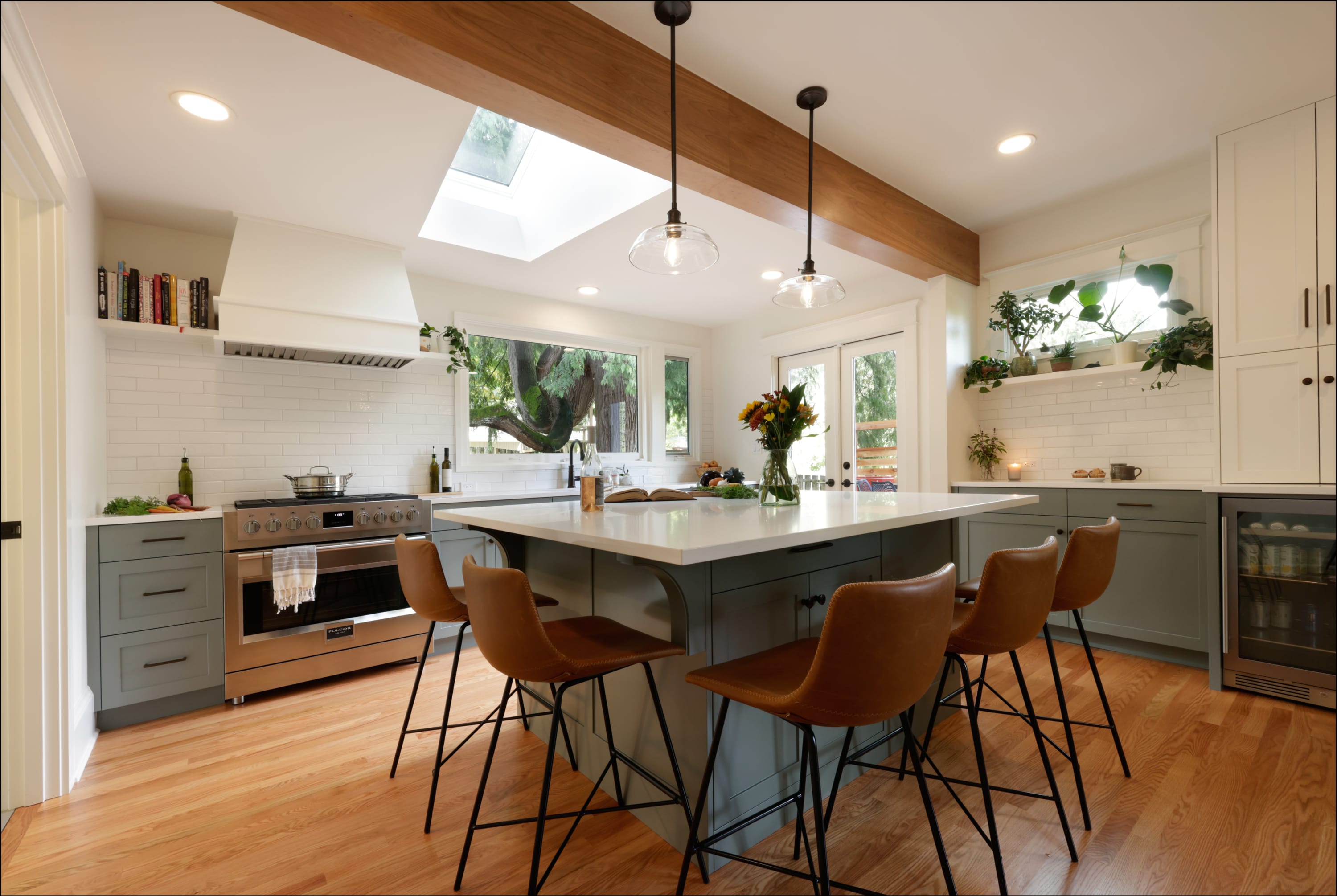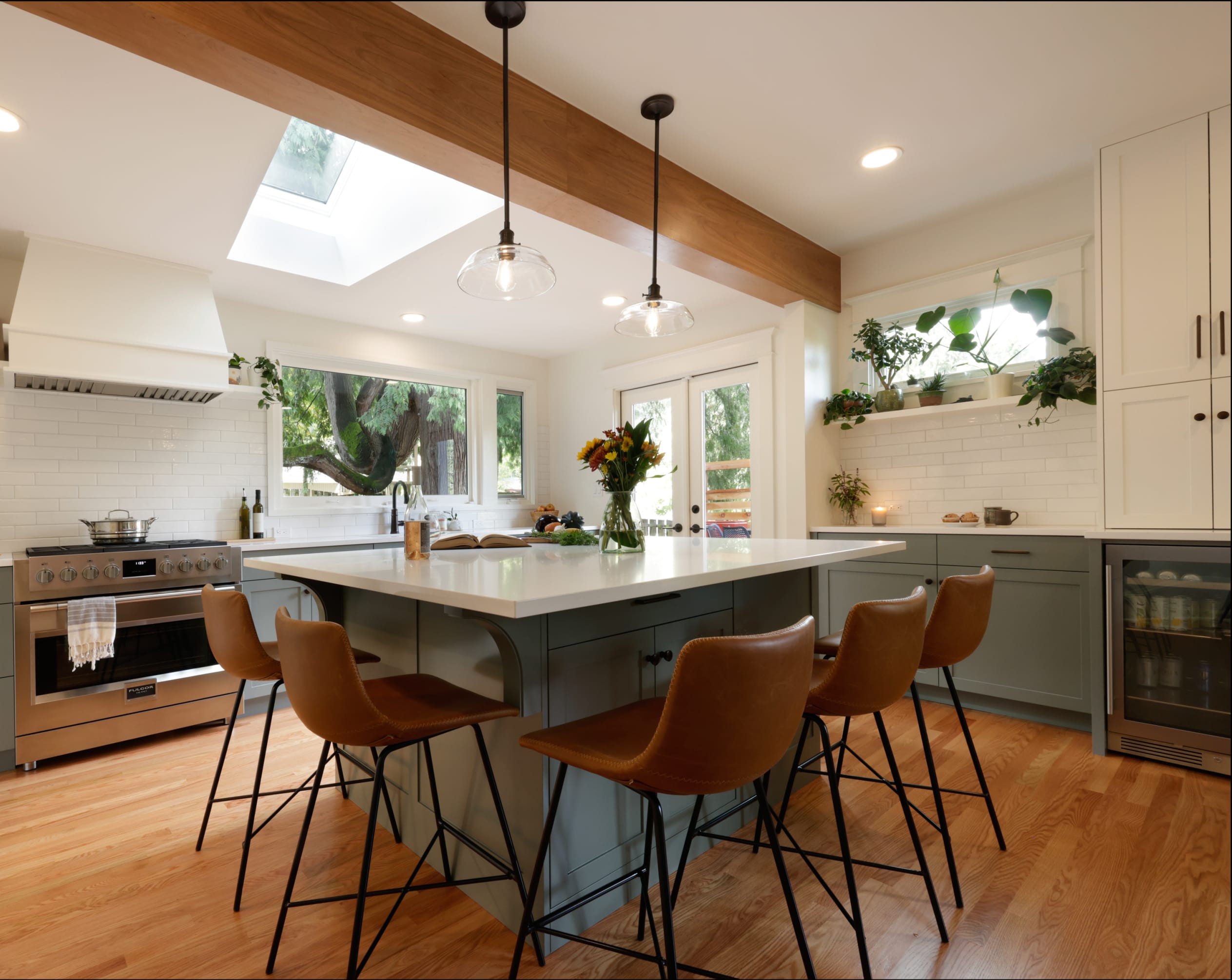 The owners of this 1922 bungalow in the SW Portland Maplewood neighborhood, were frustrated with their kitchen feeling disjointed, lacking functional storage and counter space. Finishes were failing and lighting not operational. The back mudroom felt cold and dingy, and the back entry nook deemed unusable due to its awkward size. Avid cooks and enthusiastic entertainers, this family dreamed of a space that could seamlessly support both busy weeknight meals and summer gatherings. Incorporating a main-floor laundry room was also high on their wish list.